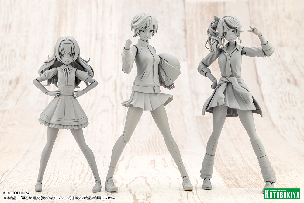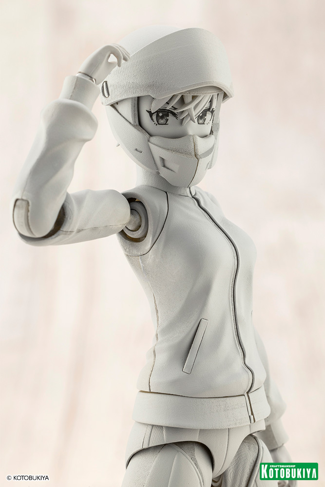 Two sets of arm parts are included, letting you combine them with the helmet, leaning upper body, and riding suit to create a look totally different from her standard school uniform. The riding suit was designed with a focus on articulation and the knees are double-jointed. The helmet can be fitted with Sousai Shojo Teien character face parts, allowing you to use anyone's face.